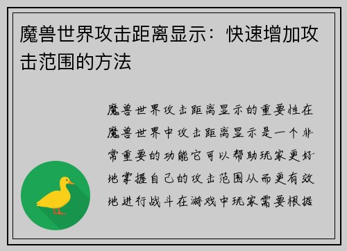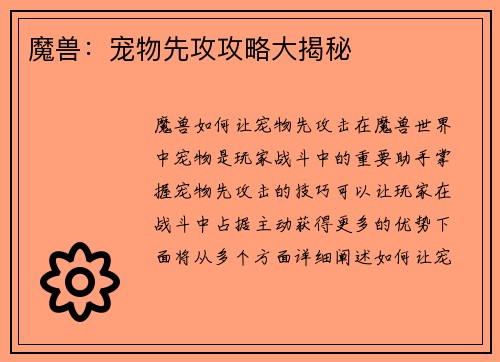 魔兽如何武器幻象 魔兽世界是一款备受玩家喜爱的大型多人在线角色扮演游戏,其中一个重要的元素就是武器幻象。武器幻象是指玩家可以将自己的武器外观改变成其他形式,从而增加角色的个性化和战斗的视觉效果。本文将详细介绍魔兽世界中武器幻象的相关内容。 1. 武器幻象的获取方式 在魔兽世界中,玩家可以通过多种方式获取武器幻象。首先是通过击败副本中的首领或者完成特定任务获得的幻象道具,这些道具可以用来解锁特定的武...