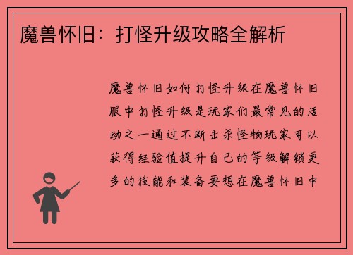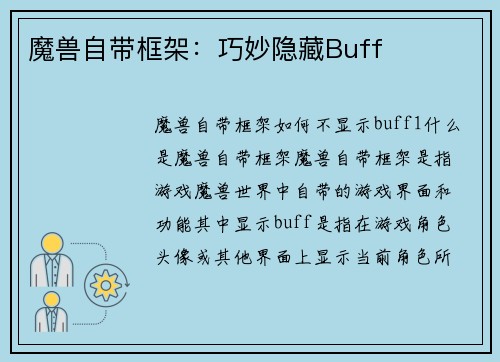 魔兽世界如何关闭能量经验条 在魔兽世界中,能量经验条是一个非常重要的游戏元素,它代表着角色的能量和经验值。有时候玩家可能希望关闭这个经验条,以获得更纯粹的游戏体验。本文将介绍如何关闭魔兽世界的能量经验条。 1. 关闭经验条的作用 关闭经验条可以让玩家专注于游戏的其他方面,如剧情、探索和社交互动。有些玩家可能觉得经验条的存在会让游戏变得过于功利化,而关闭它可以让他们更好地享受游戏的乐趣。 2. 关闭...